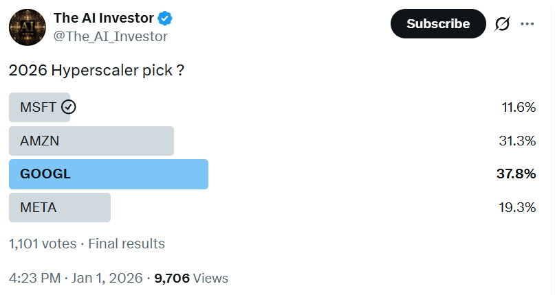 I also like that the sentiment isn’t great for Microsoft compared to the other hyperscalers right now. See this recent poll from Twitter: