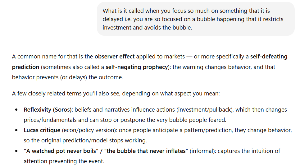Yes capital will likely be overspent on the infrastructure eventually, but I don’t think we’re there yet. I also think it’s possible that since we are so focussed on the bubble it could push the “popping” of the bubble out further.