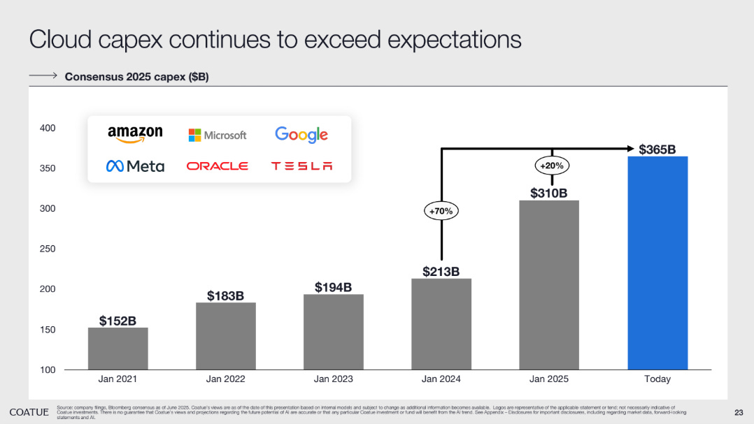 The core idea: AI will drive a major capex cycle and significantly augment services performed by humans today, boosting real-world output. As investors, we should be thinking about which companies will capture the economics of this cycle.