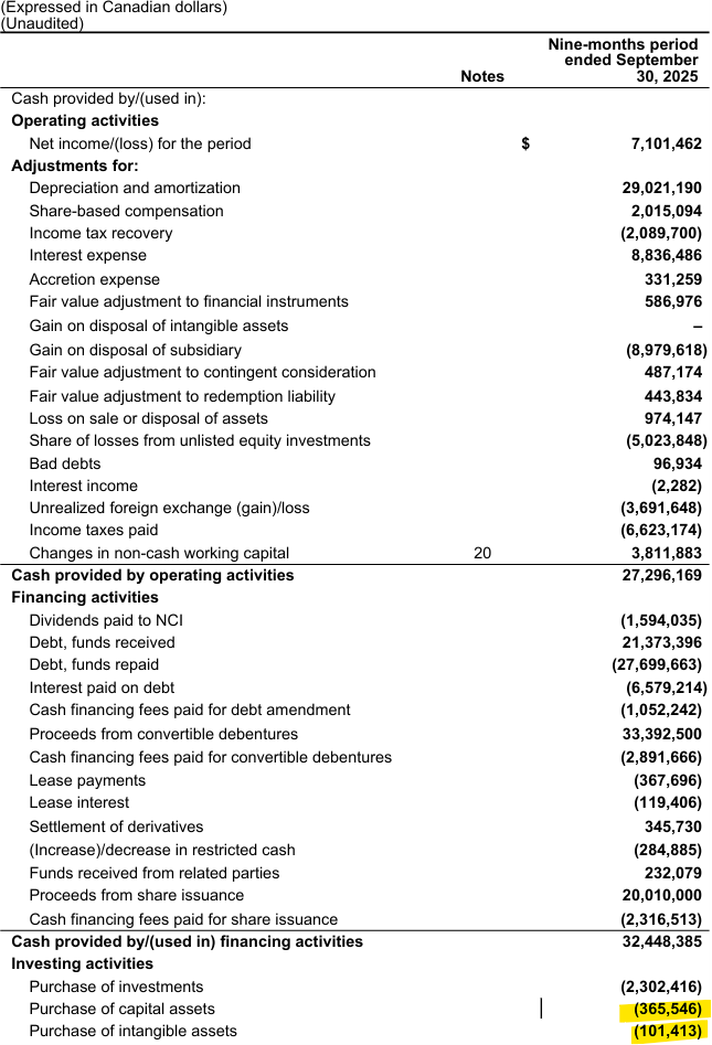 The easiest way to see this is to look at their cash-flow statement, here is an excerpt of their cash-flow statement for 2025 YTD: