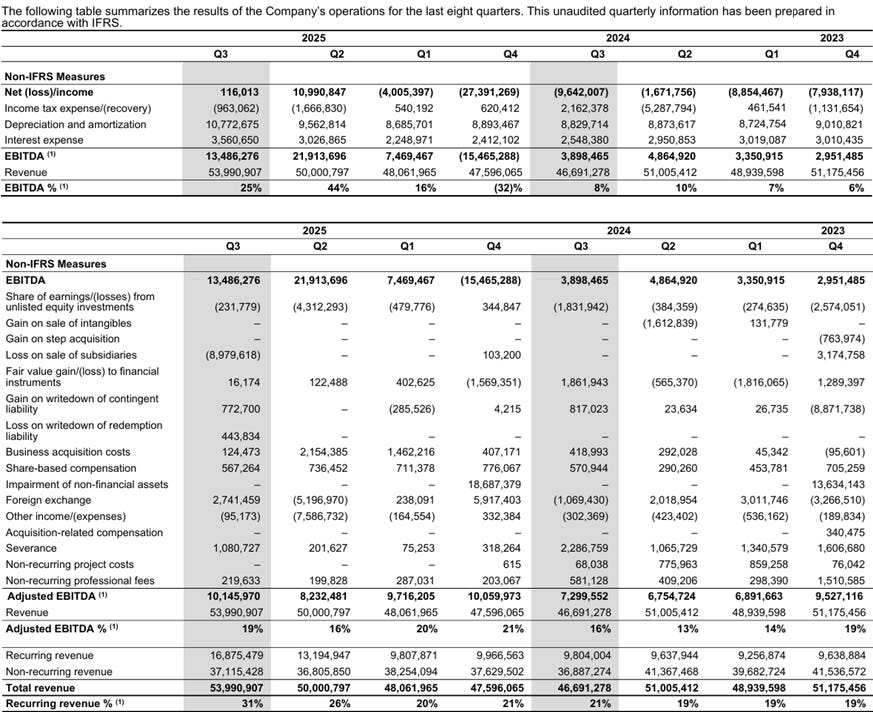 Tiny has complicated financial statements with a lot of adjustments, but I believe the most fair assessment of their underlying profitability is Adjusted EBITDA, less SBC. This metric excludes one-time costs or income i.e. severance expenses and gains on sale of subsidiaries, but deducts real costs like stock based compensation (SBC).
