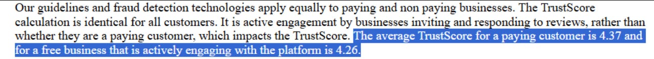 Trustpilot does admit that paid customers get access to send automated review links to customers, but they also state the company has to send the review links to all customers, not selectively (not sure how this is enforced but they do mention going after customers for this). For good companies this process could help increase their rating because I think, all else equal → customers are most likely to go on Trustpilot to leave a review if they have a negative experience, however, if every customer receives a prompt/email to review a company after purchase you will likely get more positive reviews.